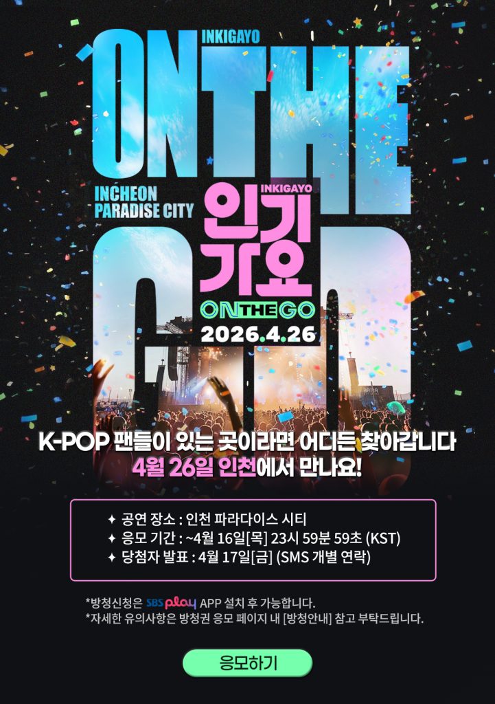 各位 K-POP 铁粉,心跳准备好漏掉一拍了吗?SBS 殿堂级打歌节目《人气歌谣》这次玩大了!《人气歌谣 ON THE GO》即将在 4 月 26 日 闪现仁川百乐达斯城 (Paradise City)。